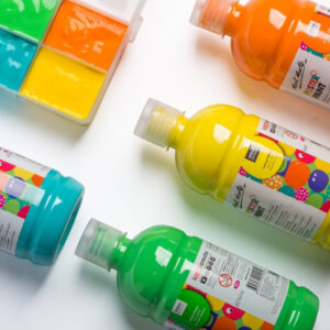 - Poster paint: Our rainbow range of colours include silver and gold, brights, neons, and metallics in easy-squeeze 500ml bottles with handy flip-top lids. We also stock convenient poster paint and fun finger paint sets. These fast-drying paints are easy to blend, apply, and simple to clean with warm, soapy water.