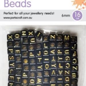 Beads Alpha 6mm 16g Cubes Gold w Black