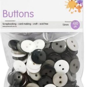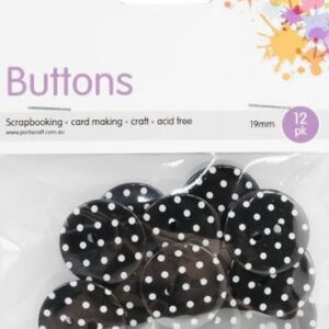 Buttons Round 19mm 12pk Polka Dots Black &...