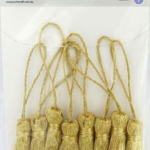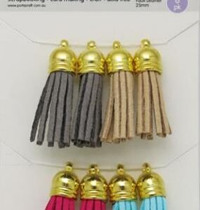 Tassels 25mm 8pk Faux Leather w Gold Cap