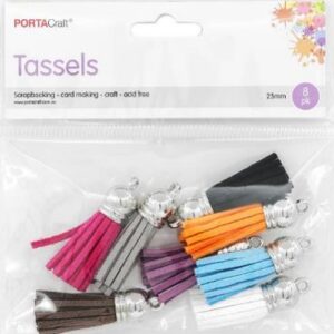 Tassels 25mm 8pk Faux Leather w Silver Cap