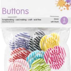 Buttons w Shank 25mm 8pk Roses Striped Mul...
