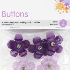Buttons w Shank 26mm 5pk Shimmer Flowers B...