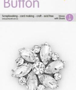 Buttons w Shank 35mm 1pk Clear Rhinestones