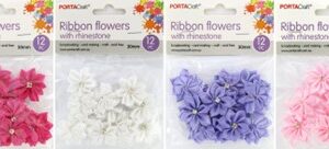 Flowers Ribbon w RStones 30mm 12pc 6 Asst