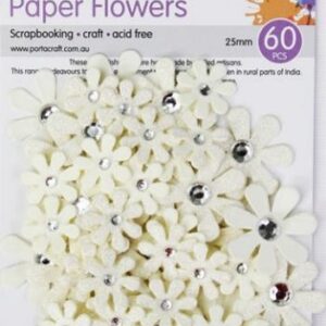 HM Paper Flowers Ivory 25mm 60pk w RStones