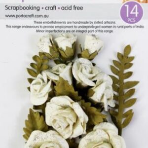 HM Paper Flowers Ivory Set 14pk Roses w Gl...