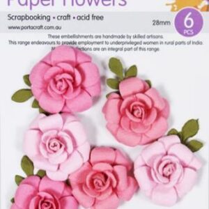 HM Paper Flowers Flamingo 28mm 6pk Roses