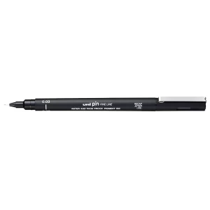 This Uni-Ball Fineliner is perfect for drawing and drafting thanks to its Uni Super Ink which is permanent, waterproof and fade proof. It will write fine lines from a strong tip that will last a long time without spreading. Uni Pin Fine Liner markers feature a super tough writing tip and an ultra smooth flow.