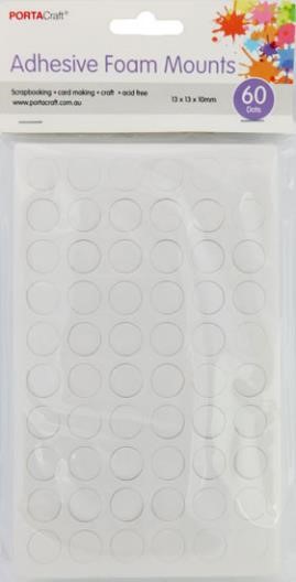 These Adhesive Foam Mounts Double Sided 10x13mm Dots 60pc are great for crafting activities. Use to mount photos and headings instead of regular glue and tape for a three-dimensional effect. These squares adhere well to paper and card without coming loose.