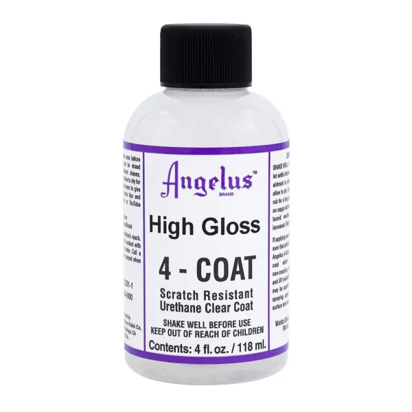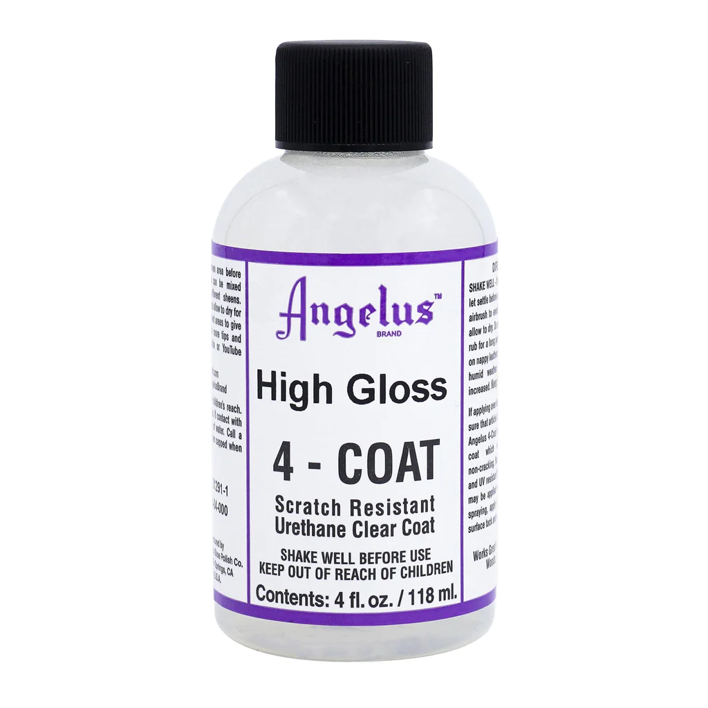 The Angelus High Gloss 4-Coat is formulated to be the most durable, flexible, and scratch resistant clear coat on the market. This urethane based top coat can withstand most scratches & scrapes to help keep your project looking it's best! When applied properly, High Gloss 4-Coat will an extremely glossy finish, close to the "patent leather" look! Also available in Flat, Matte, & Satin finishes.