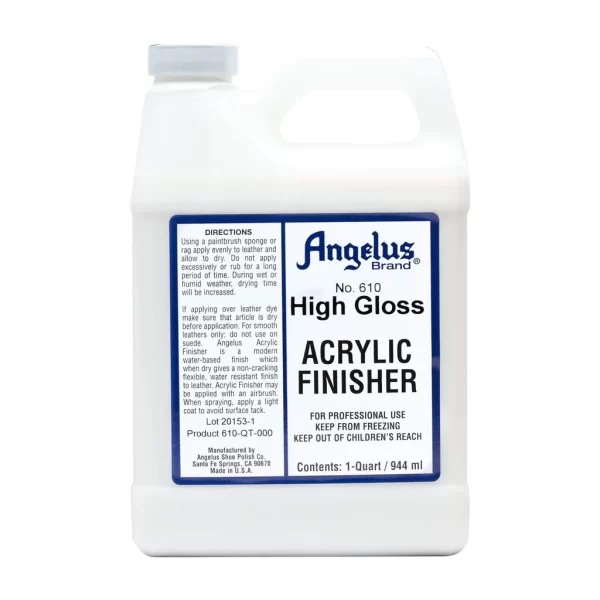 Angelus High Gloss Acrylic Finisher is a clear top coat that dries to a very glossy shine.