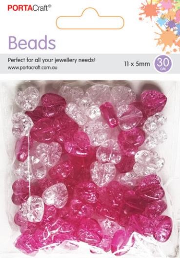 Beads 11mm 30g Shattered Hearts Dark Pink & White