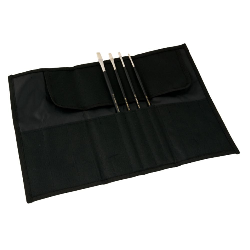 Keep your brushes and art tools protected and easy to travel with! This Brush Tie Roll is made of durable black nylon is ideal for storing valuable equipment and brushes.