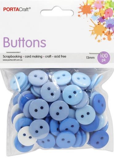 Buttons Round 13mm 100pk Blues