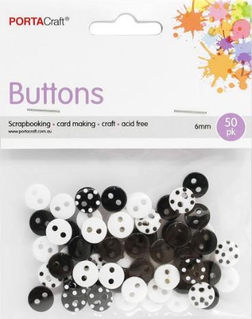 Buttons Round 8mm 60pk Polka Dots Black & White
