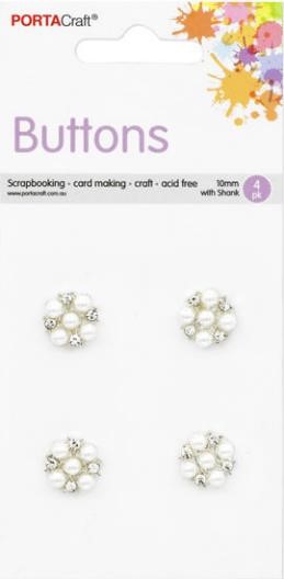 Buttons w Shank 10mm 4pk RStone & Pearl Clear