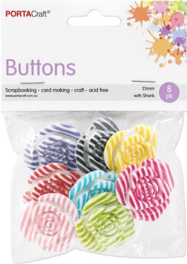 Buttons w Shank 25mm 8pk Roses Striped Multicolour
