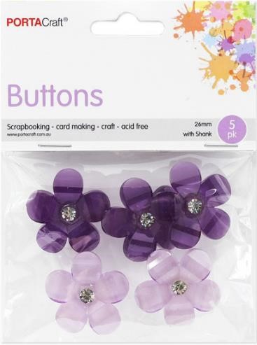 Buttons w Shank 26mm 5pk Shimmer Flowers Purple