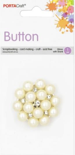 Buttons w Shank 30mm 1pk RStone & Pearl Clear