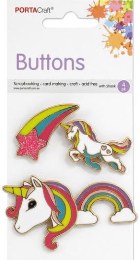 Buttons w Shank Asst 4pk Unicorn Rainbows