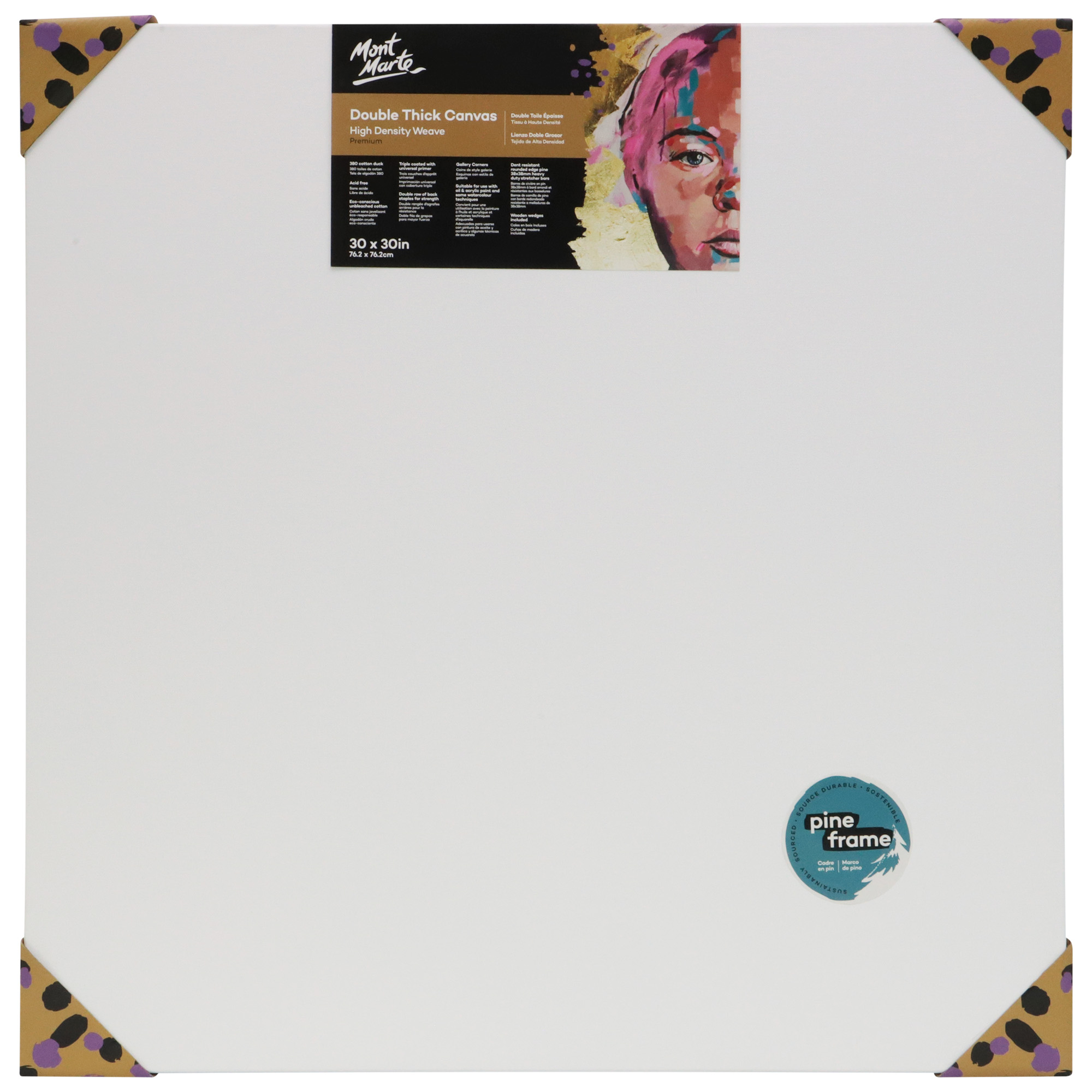 Mont Marte Double Thick canvases feature a 38mm deep frame that offers a contemporary clean edge look with no further framing required. Triple coated with universal primer and ready to be painted on. This series is suitable for moderate application of paint and light collage techniques. Used by professionals and students.