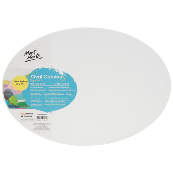 Mont Marte Double Thick Ovals are a fun and elegant alternative to standard quadrilateral canvases. Great for portraits and modern decorative pieces. These oval canvases feature a sturdy 1.8 x 3.8cm MDF moulded frame that gives a neat edge look. Folded and stapled amply on the back of the frame to keep the canvas taut. Triple coated with universal primer and ready to be painted on. This series is suitable for moderate application of paint and light collage techniques. Used by professionals and students.