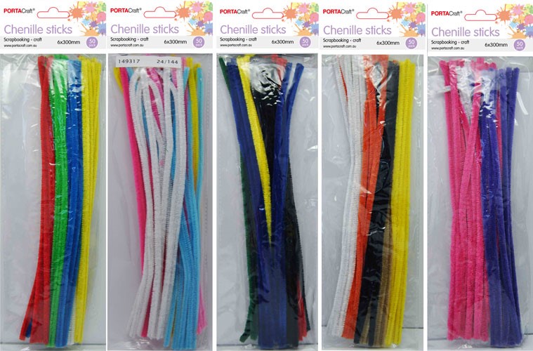 Full box of Chenille Stems 6mm 50pc 5 Asst