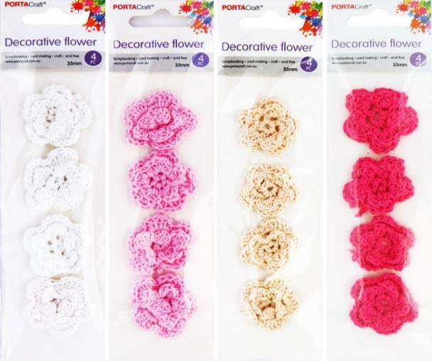 Full box of Crochet Flowers 35mm 4pc 4 Asst
