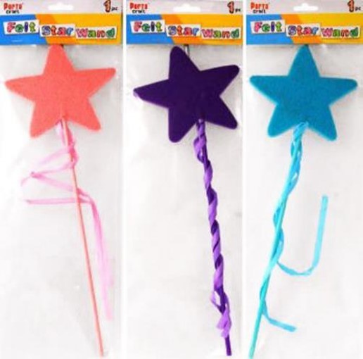 Dress Up Wand 30cm 3 Asst Star Felt w Streamers