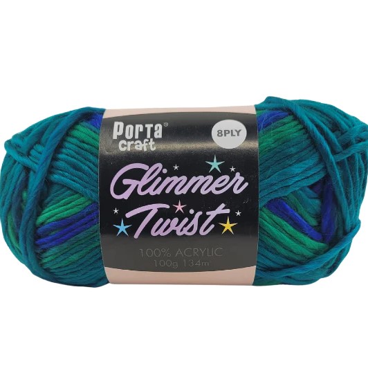 Glimmer Twist Yarn is a perfect yarn for a bright and colourful creation. Each yarn is mixed with a series of colours suited to a particular theme.