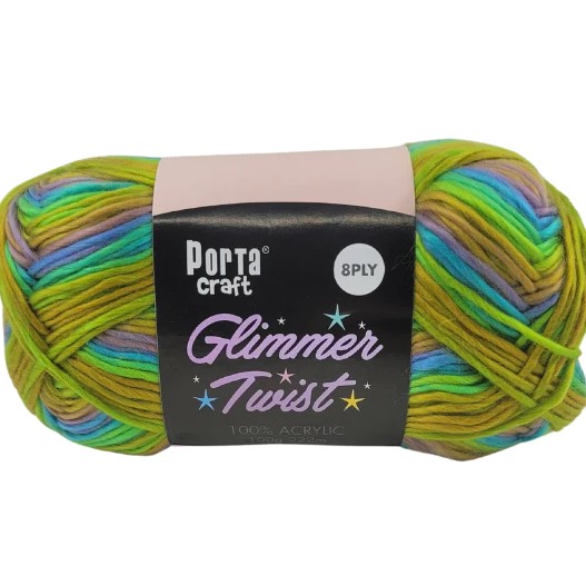 Glimmer Twist Yarn is a perfect yarn for a bright and colourful creation. Each yarn is mixed with a series of colours suited to a particular theme.