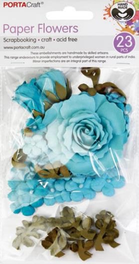 HM Paper Flowers Aquamarine Set 23pk Roses