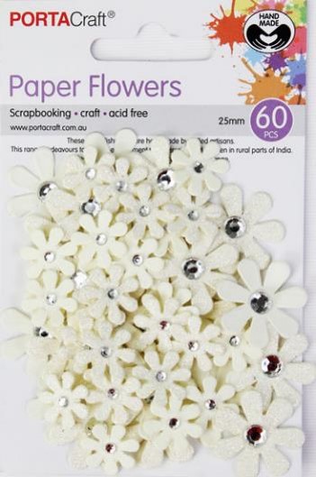 HM Paper Flowers Ivory 25mm 60pk w RStones