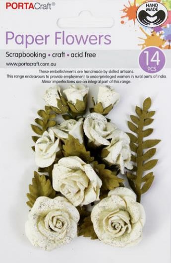 HM Paper Flowers Ivory Set 14pk Roses w Glitter