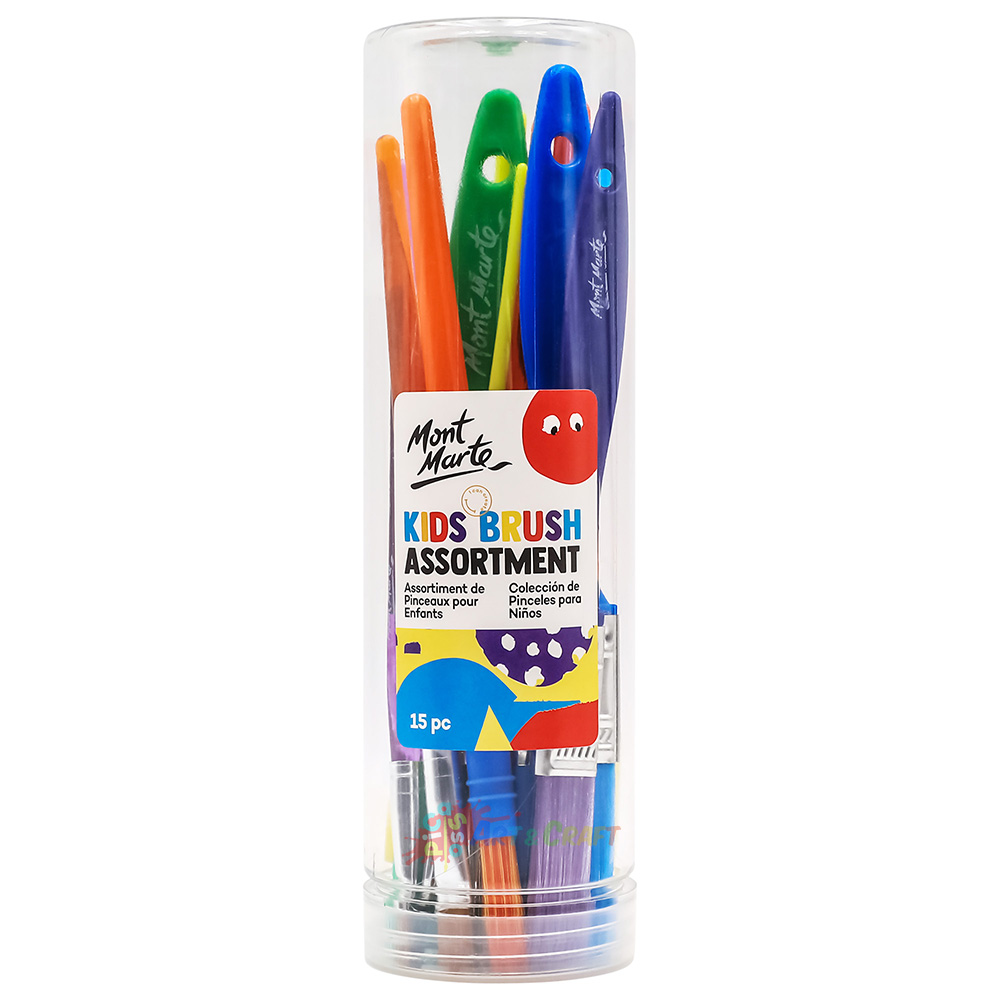 Encourage your little artist to create with our Kids Cylinder Brush Assortment 15pc. This handy kids' paintbrush set includes an assortment of paintbrushes and sponges that can be used for a variety of art and craft projects. With lightweight handles these brushes are easy for little hands to use and come neatly packaged in a reusable screw top storage container. Ideal for a range of techniques this children's' paintbrush set is great for home, kindy or school.