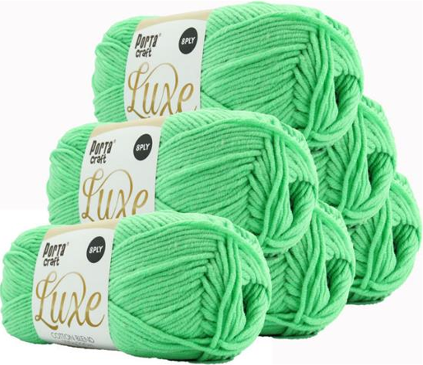 Luxe Yarn is a cotton blend perfect for luxurious yarn creations. It consists of 60% cotton and 40% acrylic yarn.