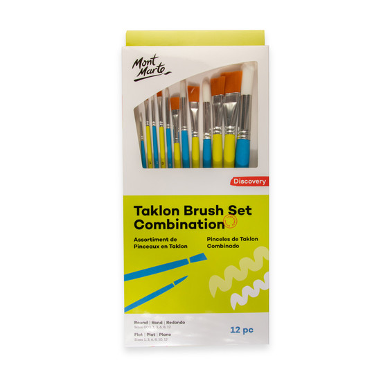 Get a mix of brushes in one go with our Taklon Brush Set Combination 12pc. Inside this assorted paint brush set is a mix of round and flat brushes in a range of sizes. Create a variety of effects and strokes, including outlining, blending, hard or soft edges and more. These paint brushes offer flexible bristles and sturdy wooden handles to last you many creative sessions. Use this handy brush set with acrylic, oil and watercolour paints. Top up your art supplies today with this versatile paint brush set.