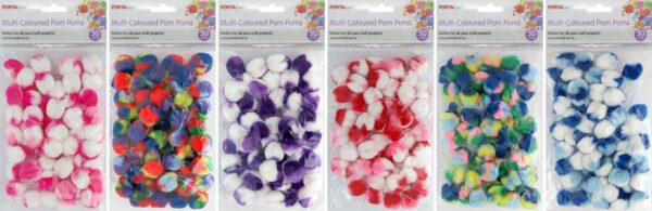 Full box of Pom Poms 25mm 50pk Multi Coloured 6 Asst