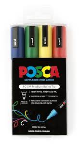POSCA MARKERS MEDIUM PC5M 1.8-2.5MM BULLET TIP COLOURS 4 PACK ASSORTED SET