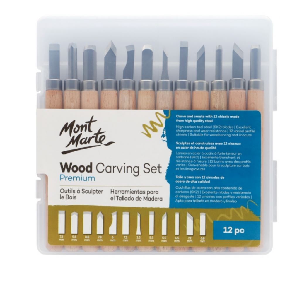 Carve and create with this set of 12 premium quality chisels. They feature high carbon steel (SK2) blades that are sharp from the get-go and ready for your woodcarving projects or linocuts. With a variety of chisel profiles included, you'll be able to achieve a range of cutting styles such as curves, straight lines and finer details.