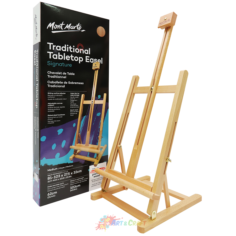 This Traditional Tabletop Easel is a fantastic mid level desk easel. It is designed to be placed on a desk or table and may be used whilst standing or seated. Suitable for use for painting or display purposes.