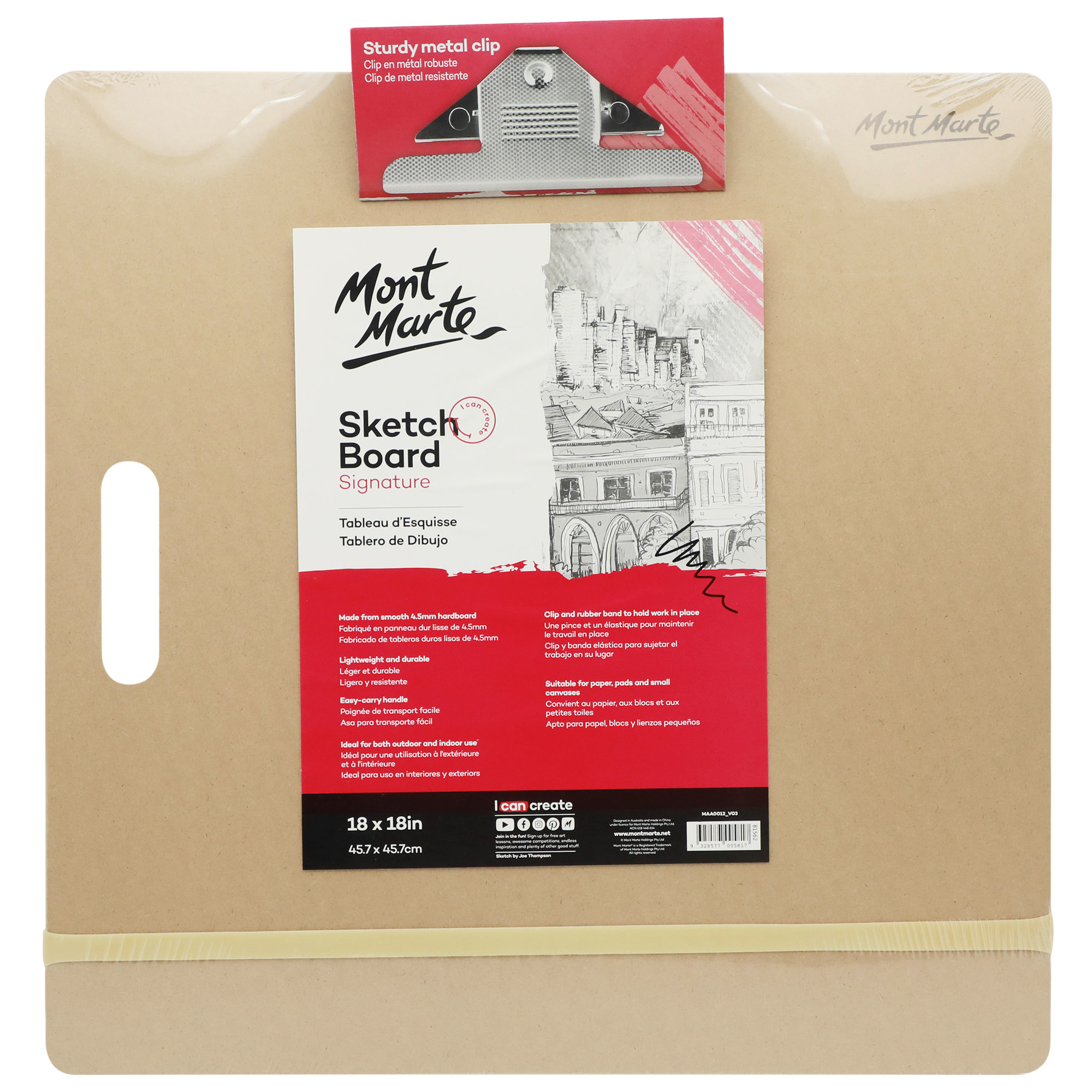 The Mont Marte Sketch Board is ideal for outdoor sketching, but may also be used in the studio or classroom. The large rubber band and clip holds your sketch pad securely in place.