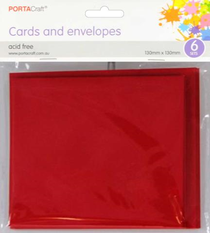 SQ Cards & Envelopes 13cm 6pk Crimson Red