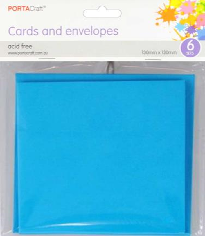 SQ Cards & Envelopes 13cm 6pk Light Blue