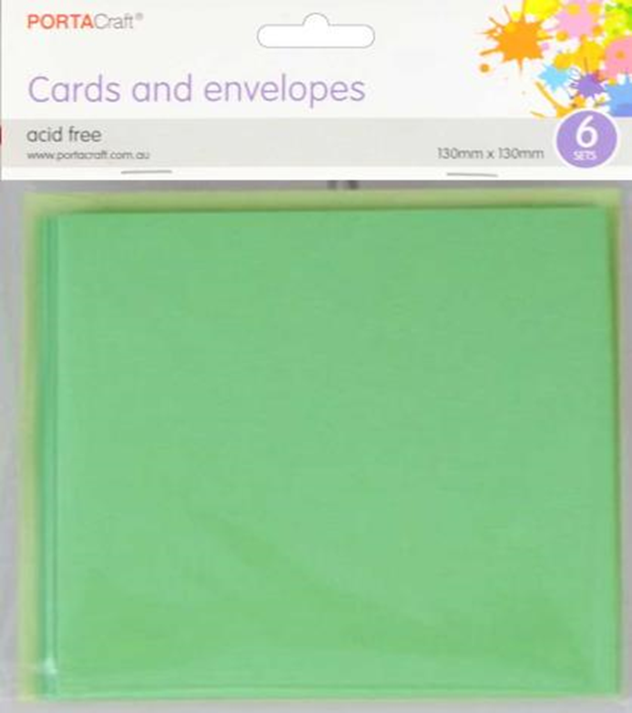 SQ Cards & Envelopes 13cm 6pk Mint Green