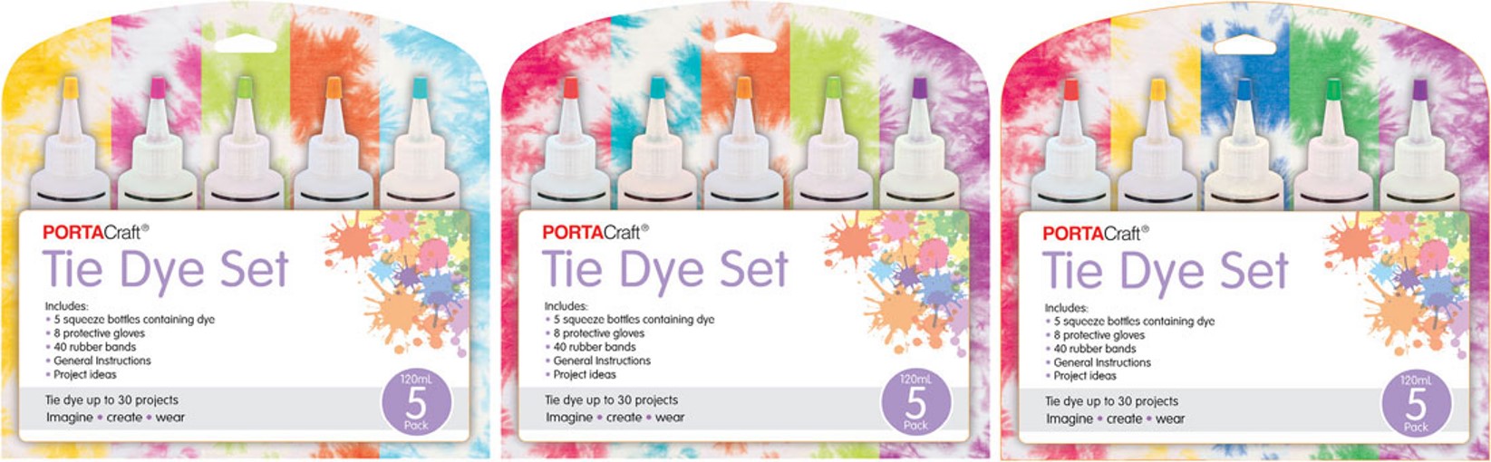 Tie Dye Set 5 Bottles 120ml 3 Asst