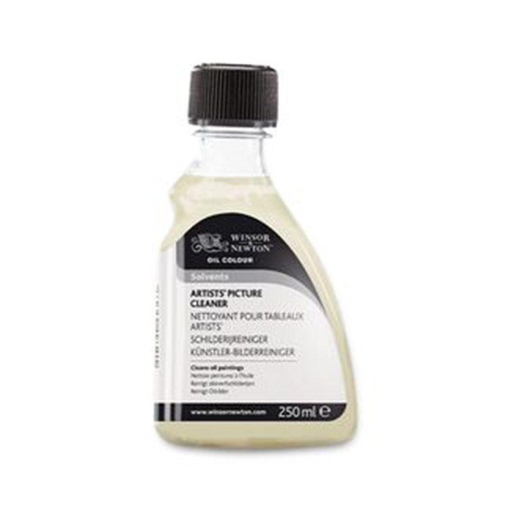 Designed for cleaning varnishes paintings of dust, dirt and old varnish oxidation, the Winsor & Newton Artist’s Picture cleaner is a natural oil emulsion containing ammonia.